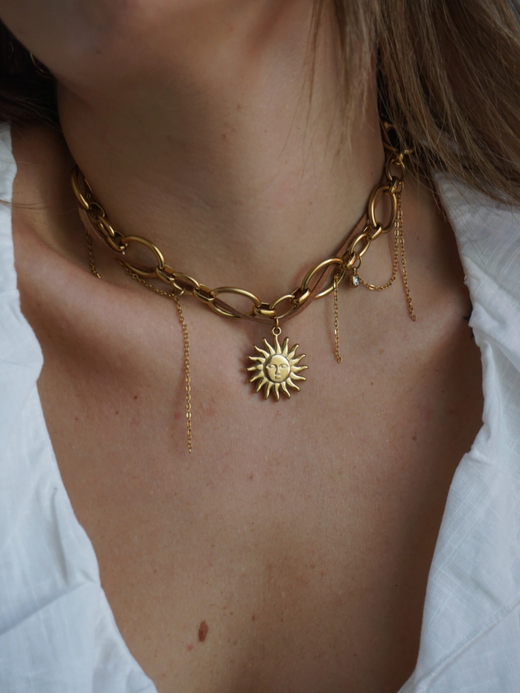 Collar de acero inoxidable con baño de oro 18K, el largo es de 40 cm. Lleno de detalles y super original, te vas a cansar de usarlo en todos tus looks!