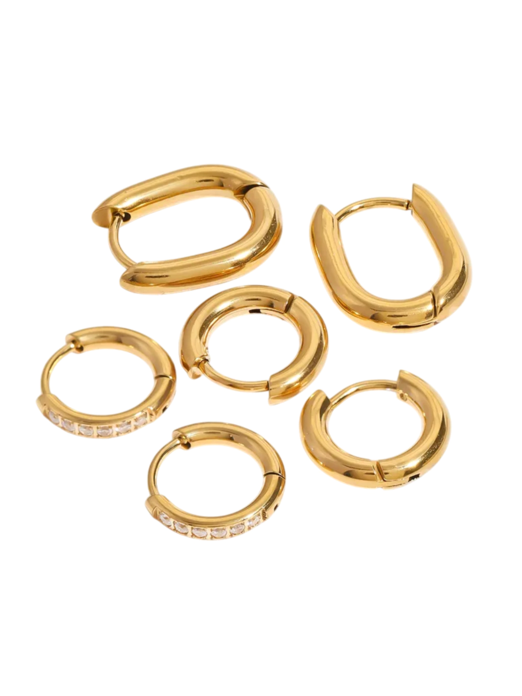 Set de acero inoxidable con baño de oro 18K. Podes adaptarlo a tus perfos como más te guste, animate a cambiar el orden de los aros y a sumarle earcuffs para hacerlo más canchero.