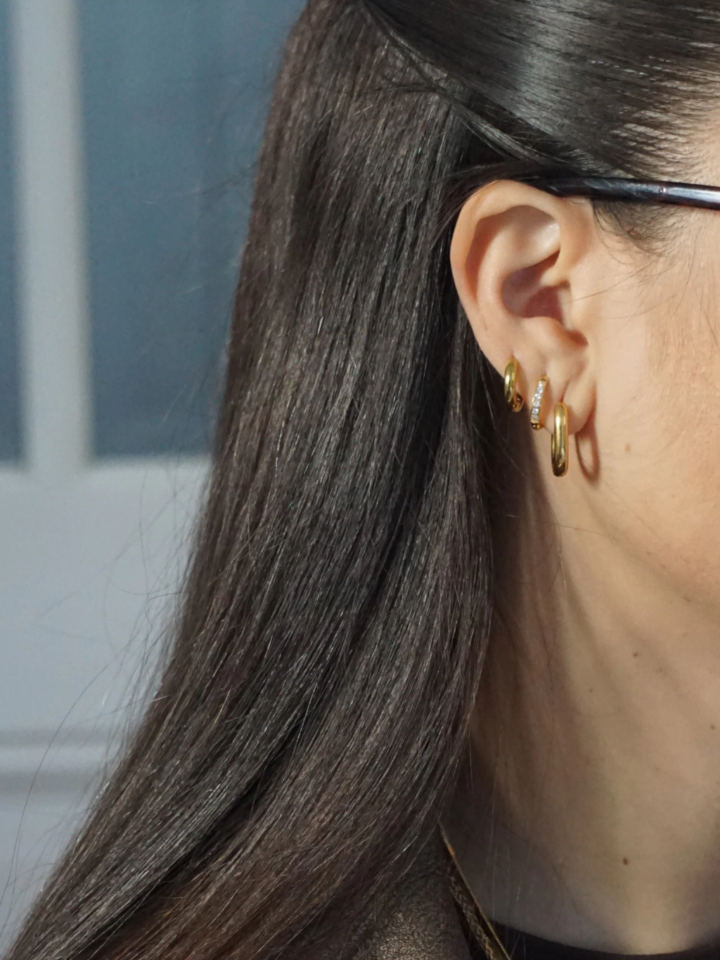 - Un par de argollitas ovaladas de 1,3 cm de ancho total.